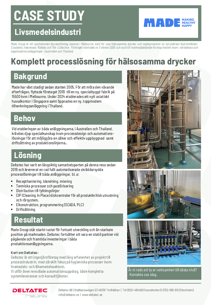 Deltatec fortsätter att växa inom den svenska läkemedelsindustrin. Vårt nya kontor i Stockholm har nu fått förtroende att leda ett omfattande projekt inom hygieniska processer